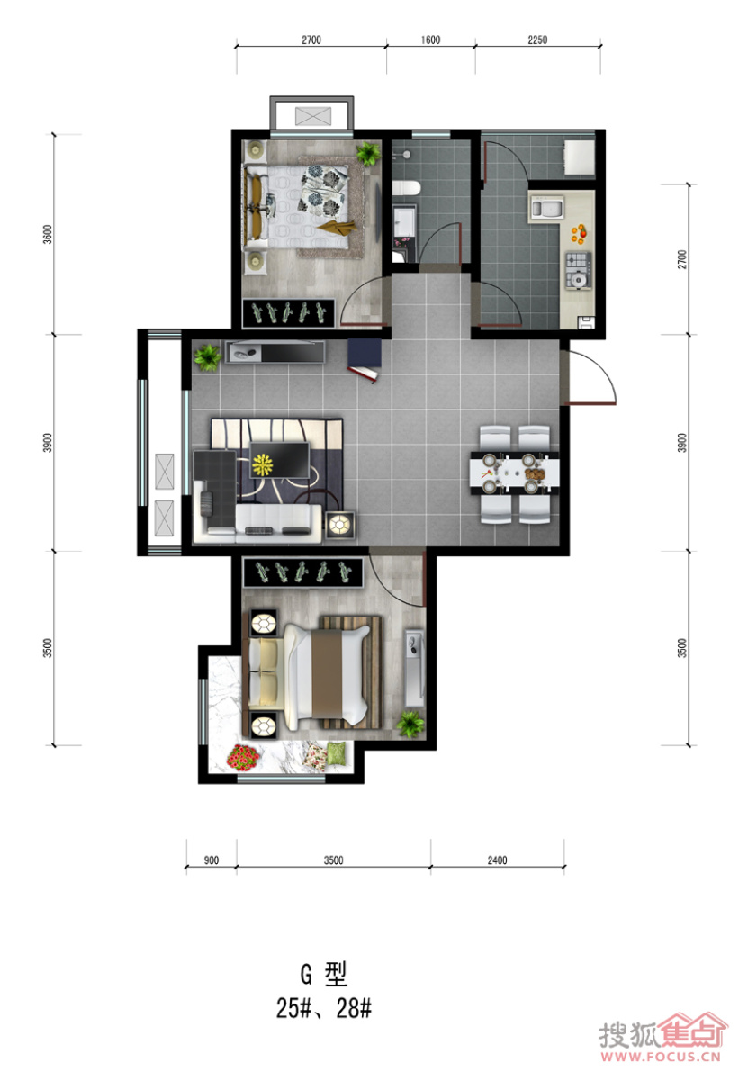 东亚原香小镇G-2室2厅1卫-72.95㎡